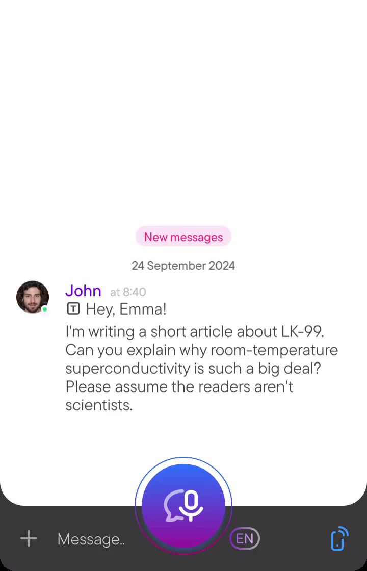 We fuse real-time audio, live transcription, and AI assistance to let you communicate faster, respond in detail, and waste no time waiting.